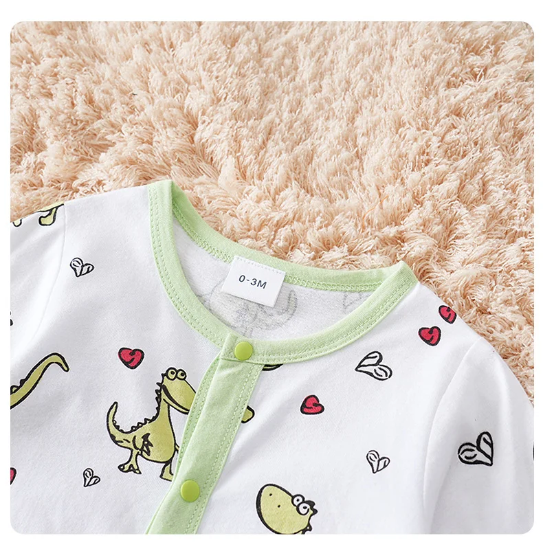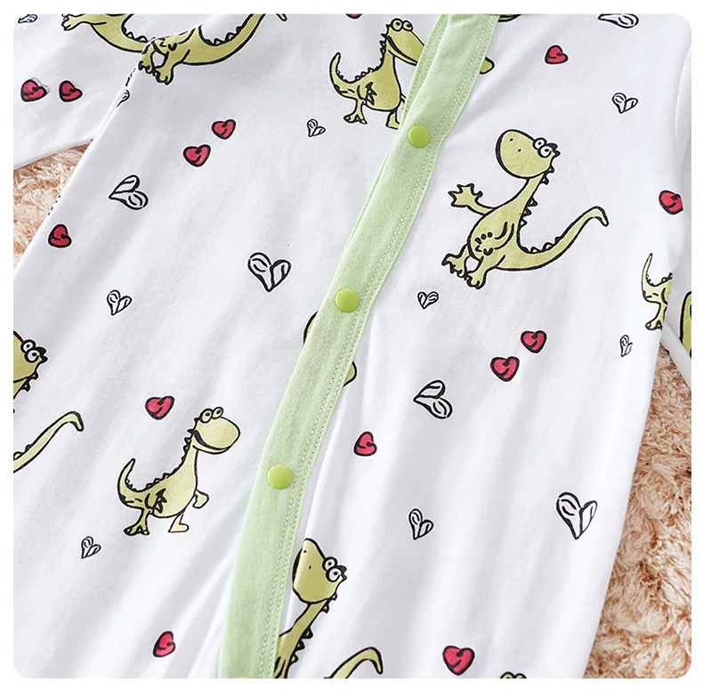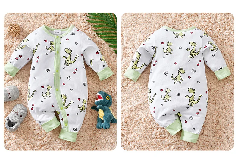Spring and fall cotton long-sleeved baby clothing green Cartoon dinosaur print 0-18 months baby one-piece newborn romper