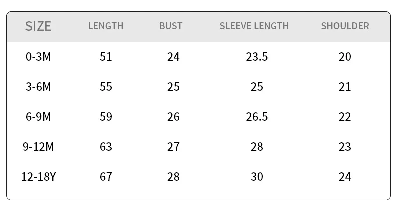 size_info: {"sizeInfoList":[{"length":{"cm":"48","inch":"18.90"},"size":"0-3M 59cm","vid":-1},{"length":{"cm":"50","inch":"19.69"},"size":"3-6M 66cm","vid":-2},{"length":{"cm":"52","inch":"20.47"},"size":"6-9M 73cm","vid":-3},{"length":{"cm":"54","inch":"21.26"},"size":"9-12M 80cm","vid":-4},{"length":{"cm":"56","inch":"22.05"},"size":"12-18M 90cm","vid":-5}]}