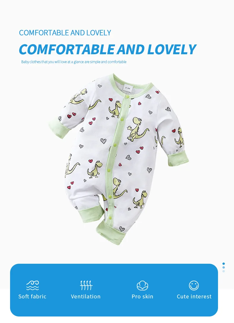 Spring and fall cotton long-sleeved baby clothing green Cartoon dinosaur print 0-18 months baby one-piece  newborn romper