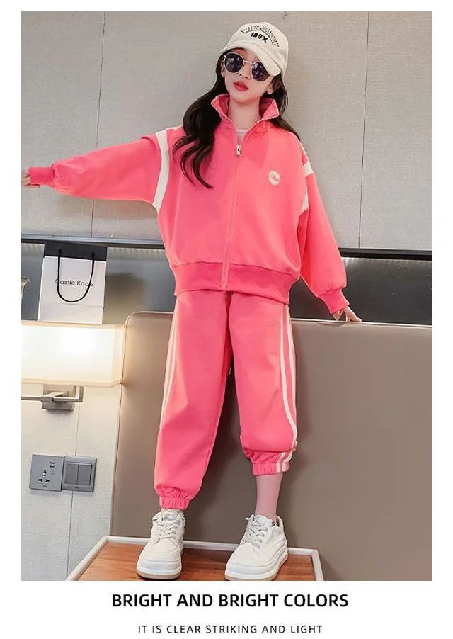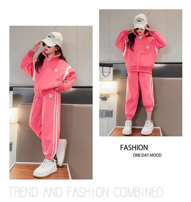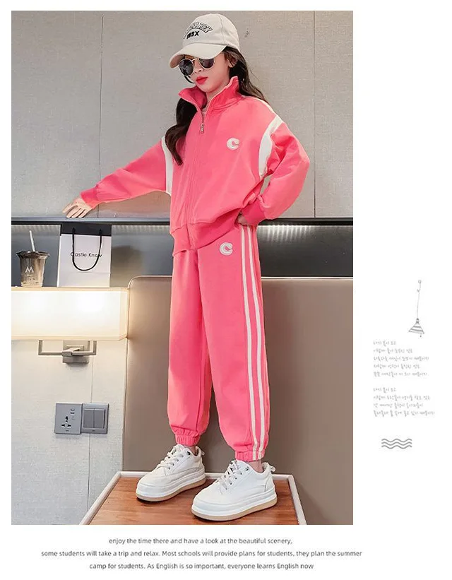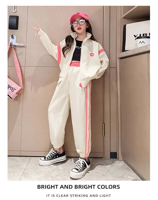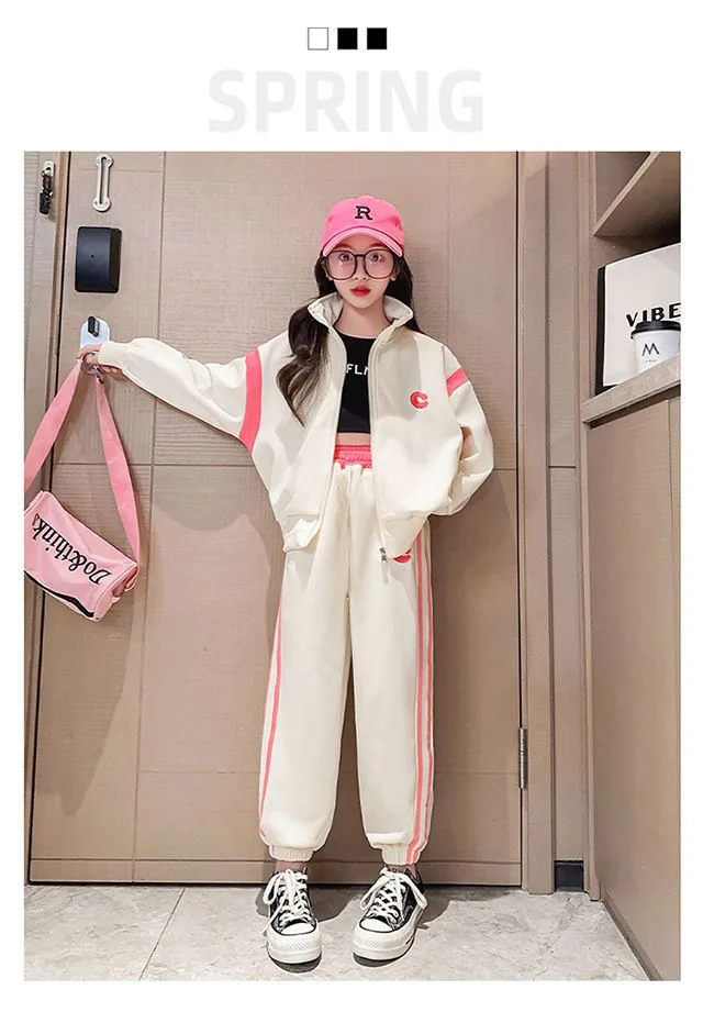 Spring Teenage Girl Clothes Embroidery Jacket Coat and Stripe Pants Outfit Children Casual Top and Bottom 2 Piece Suit Tracksuit
