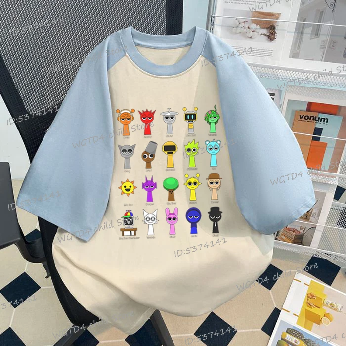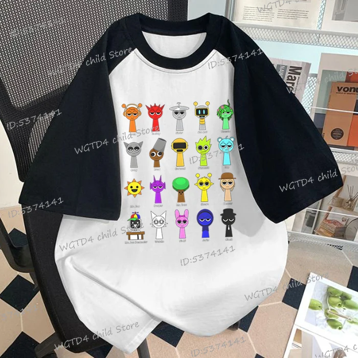 Sprunki Cartoon T-Shirt Boys Girls Shoulder Insertion Short Sleeve Tee New Design Cotton Summer Kids Clothes Gamer Humor Tees