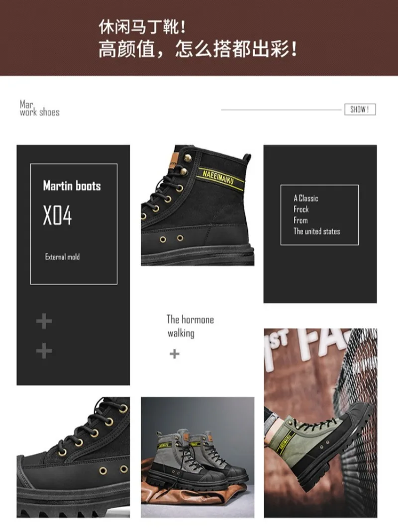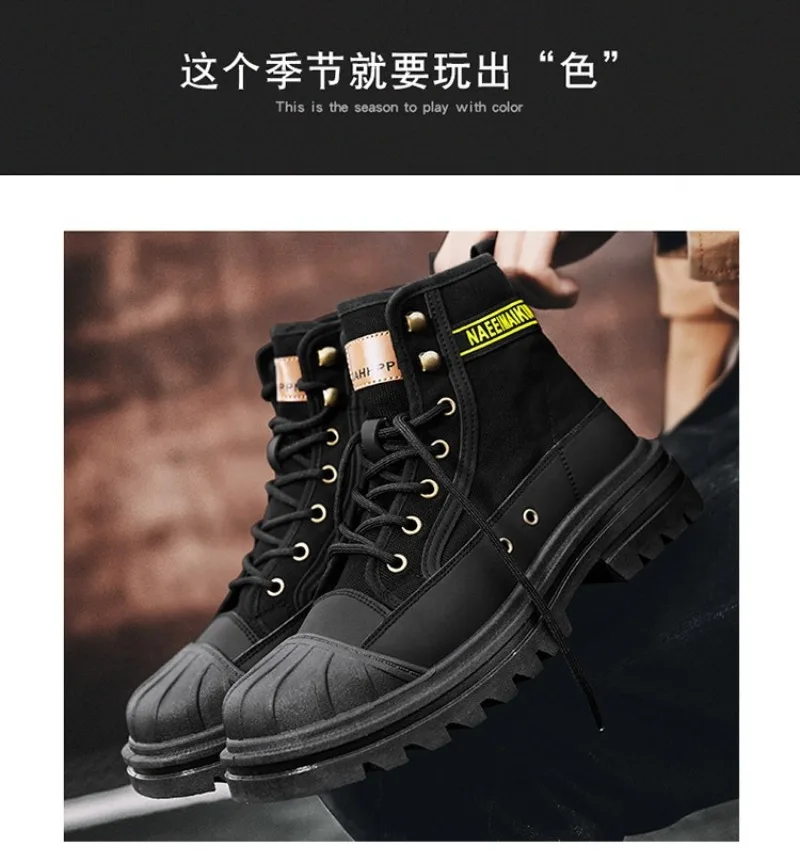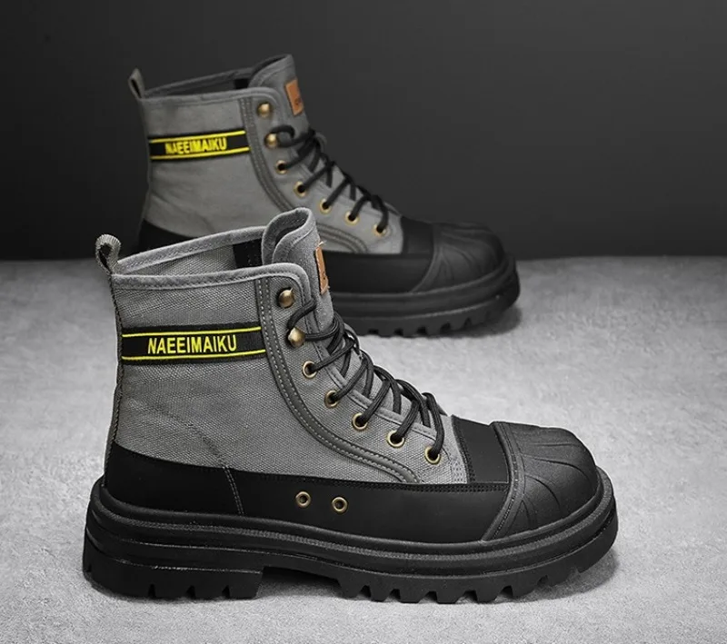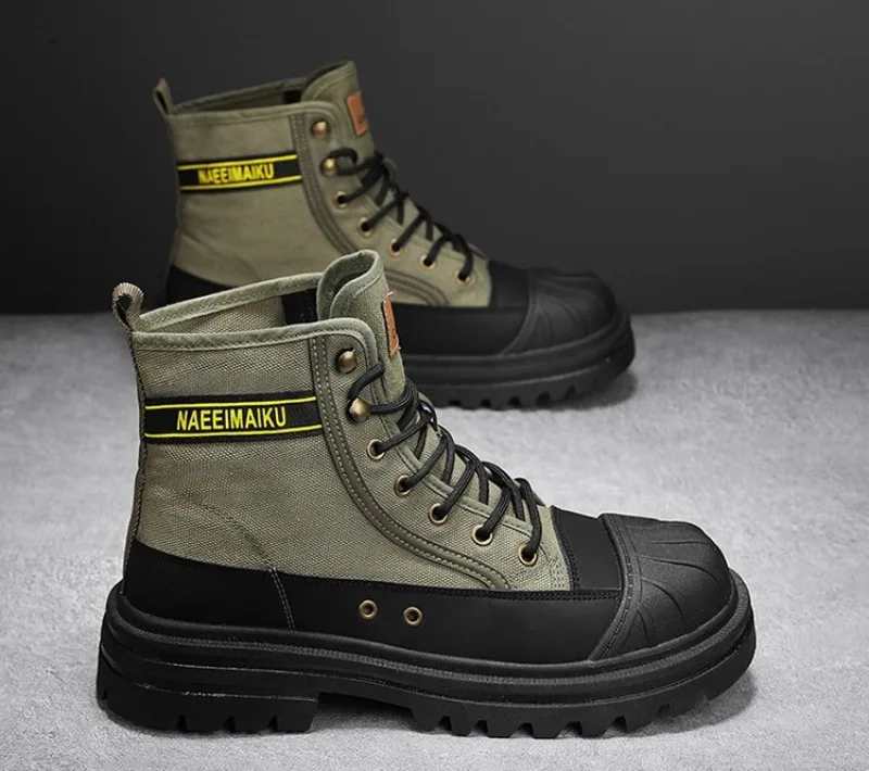 Street Style Men's Canvas Boots Autumn Winter Camouflage Platform High Top Ankle Boots Wear-resistant Works Boots Botas Hombre