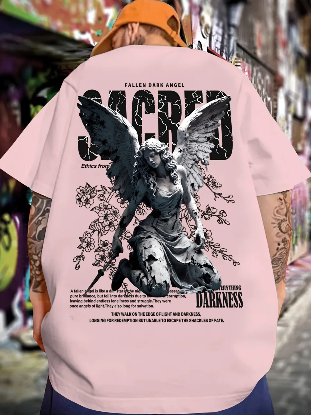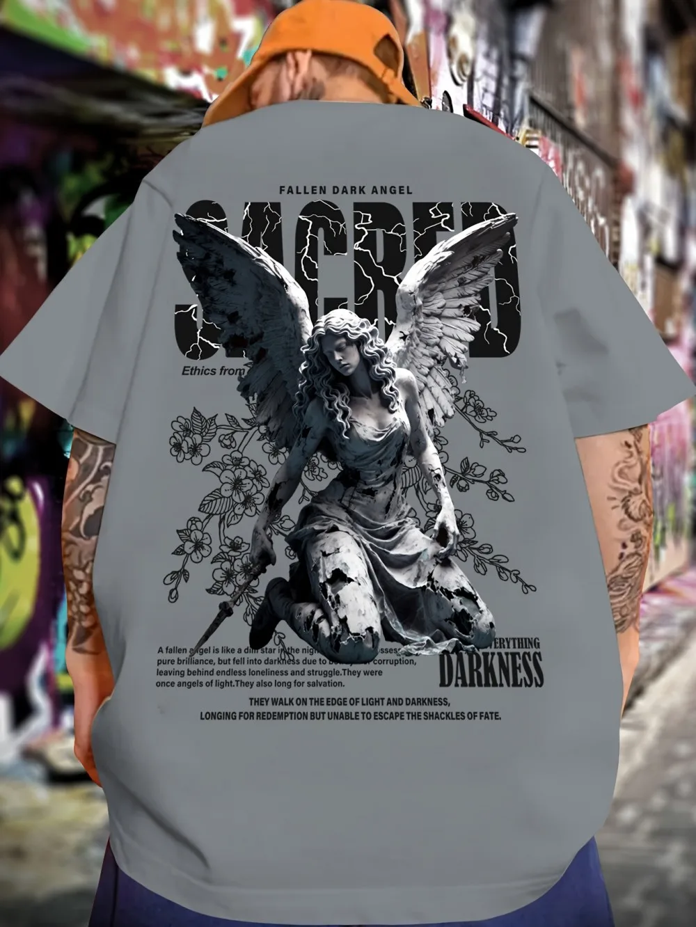 Summer fashion men's personalized angel letter print micro elastic breathable round neck T-shirt outdoor street versatile top