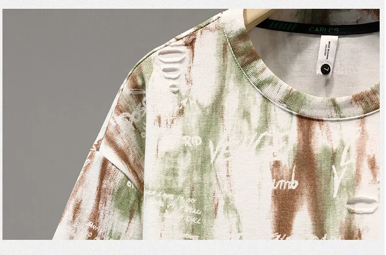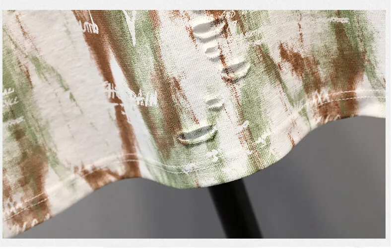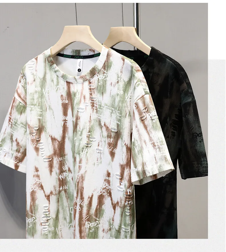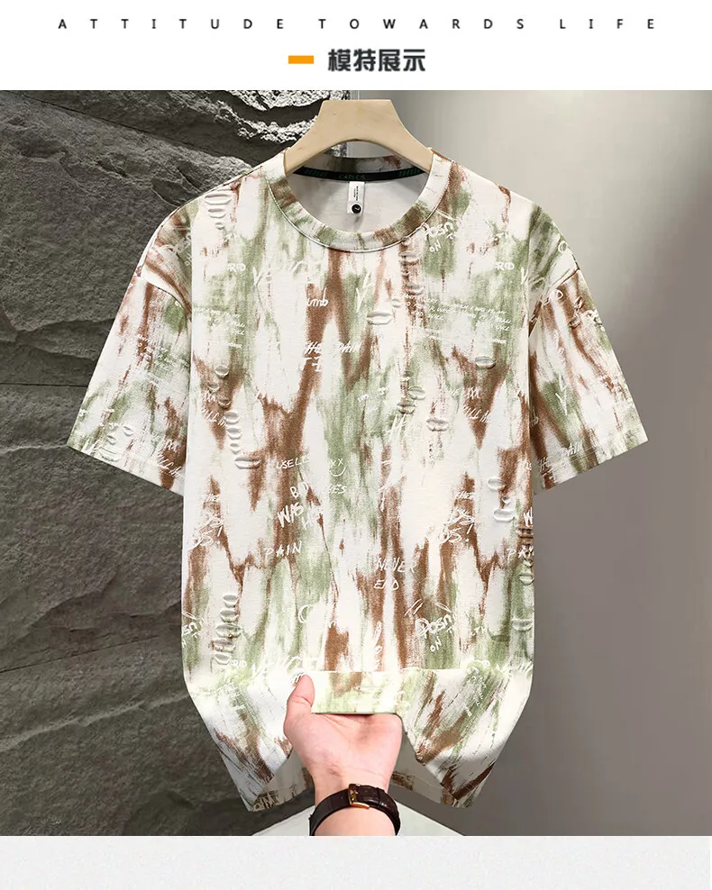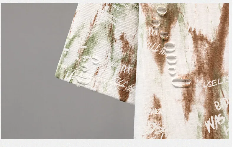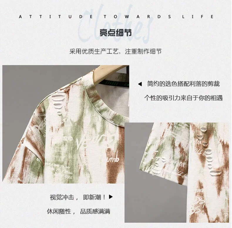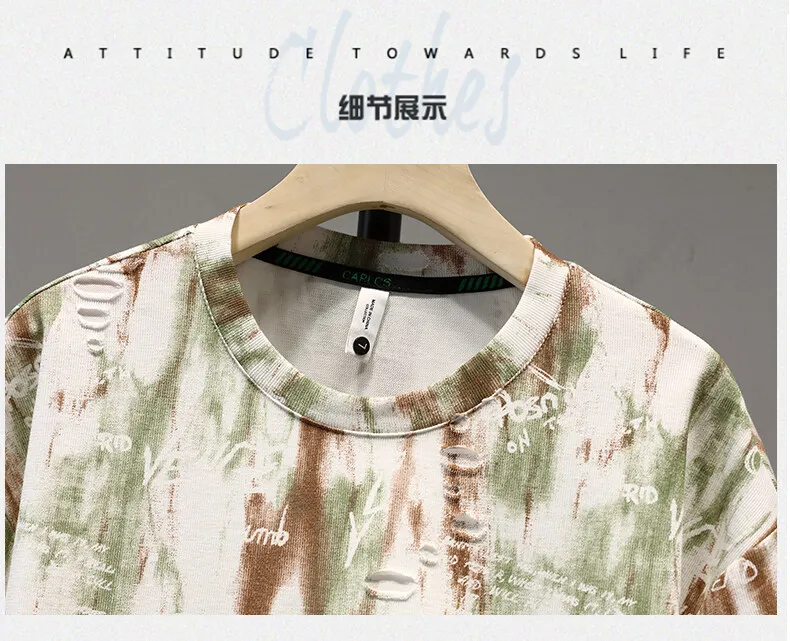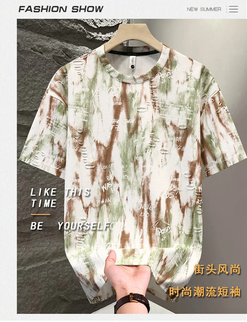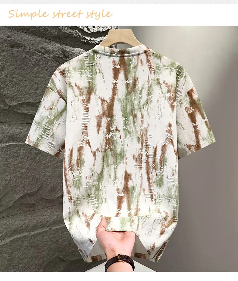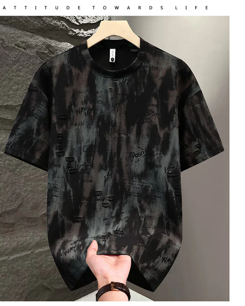 Summer Hot Men Ripped Hole T-shirt Short Sleeved New Loose Casual Round Neck T-shirt Half Sleeved Men Top Trendy