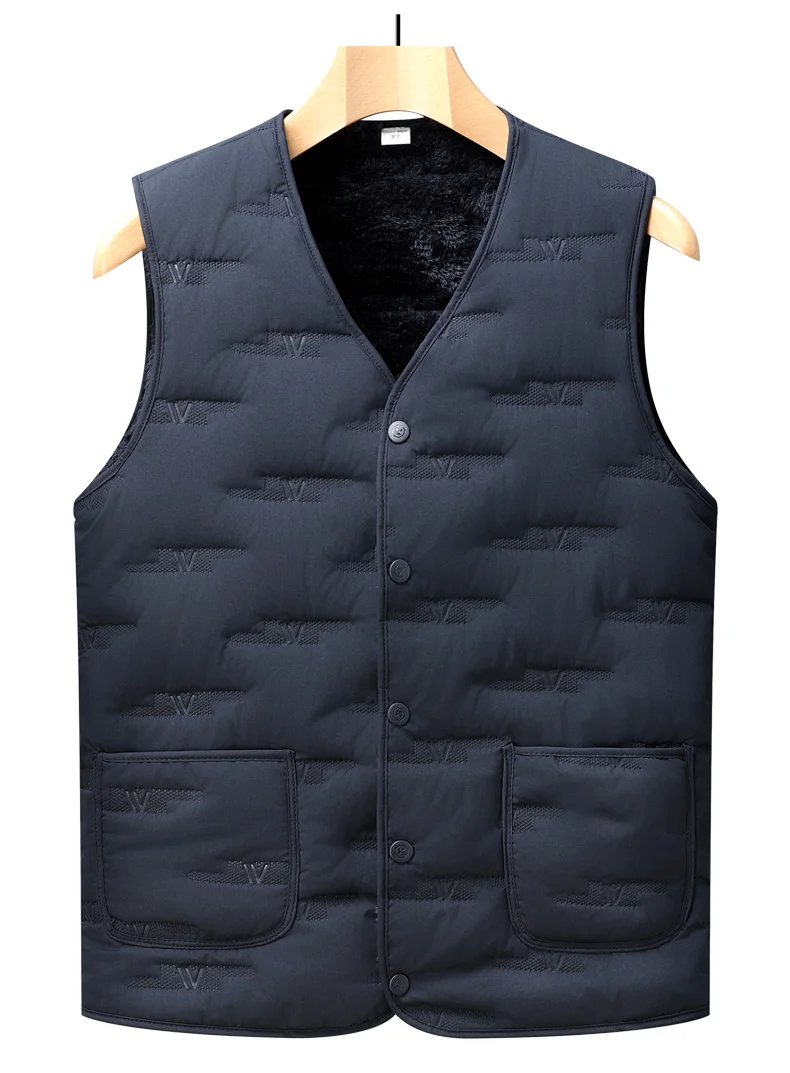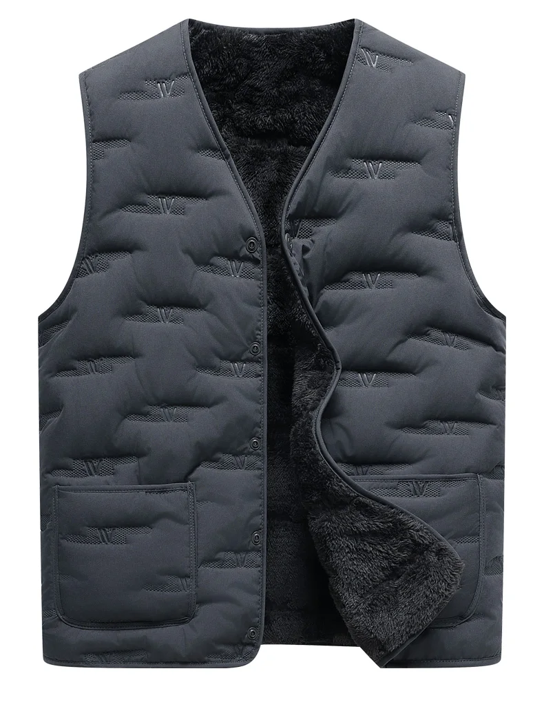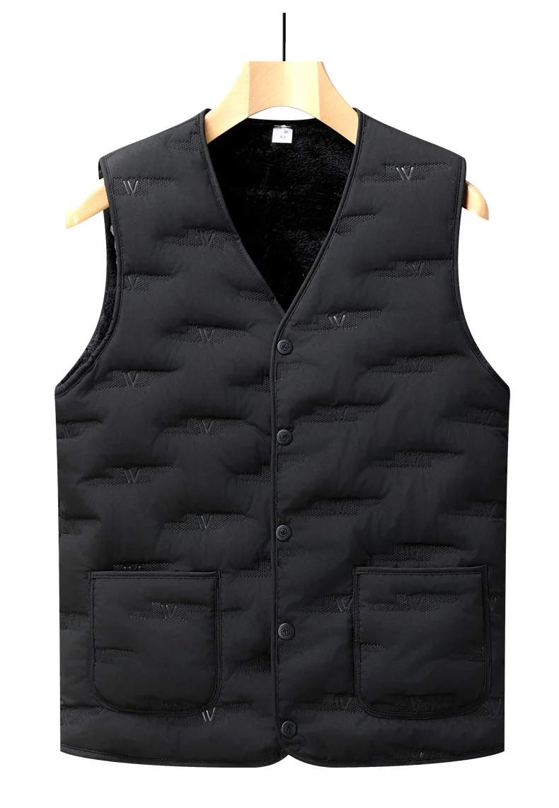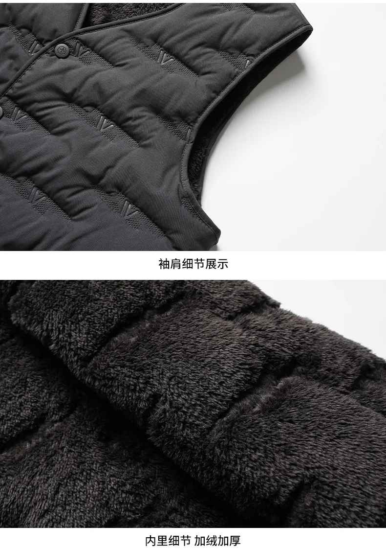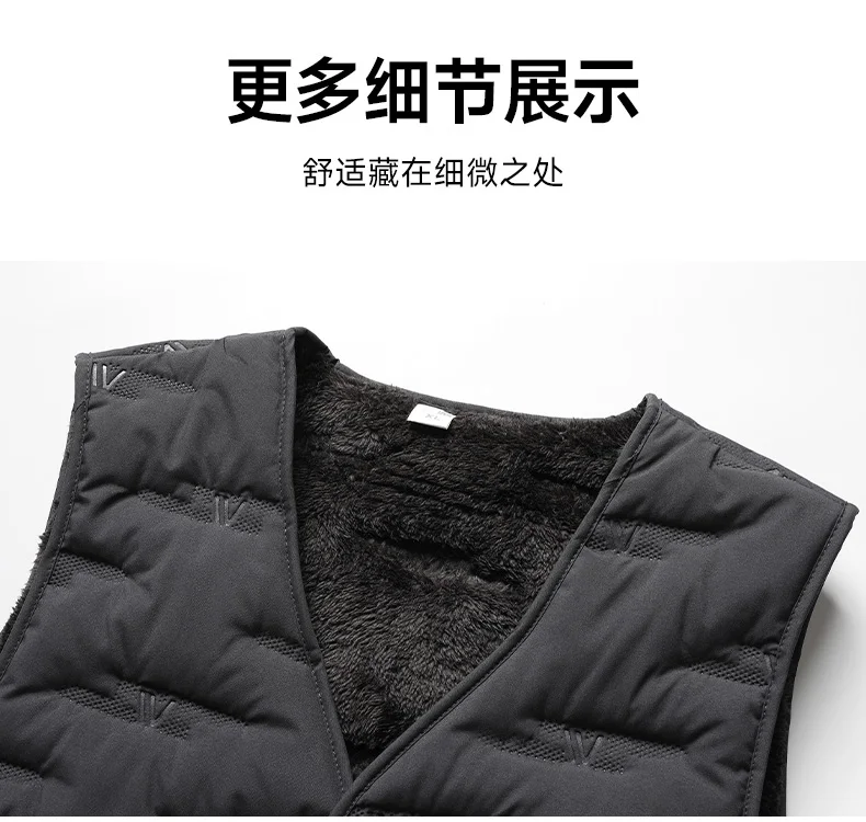 Winter Men Fleece Lined Vest Jacket Windproof Wool Liner Warm V-neck Casual Sleeveless Coats Padded Thicken Outdoor Waistcoats