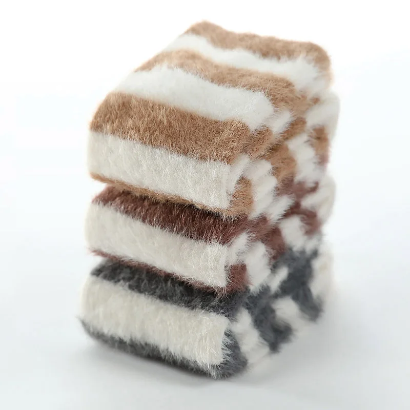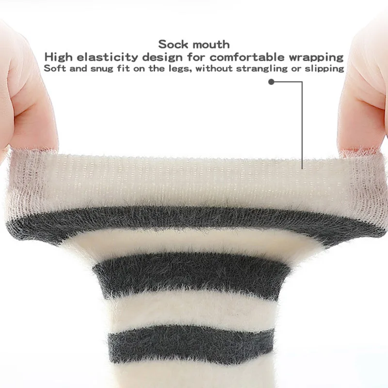 Winter Plush Long Socks for Boy Girl Korean Striped Warm Baby Knee High Socks Thick Mink Fur Anti-Cold Toddler Kids Floor Socks