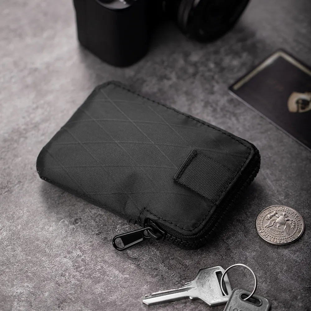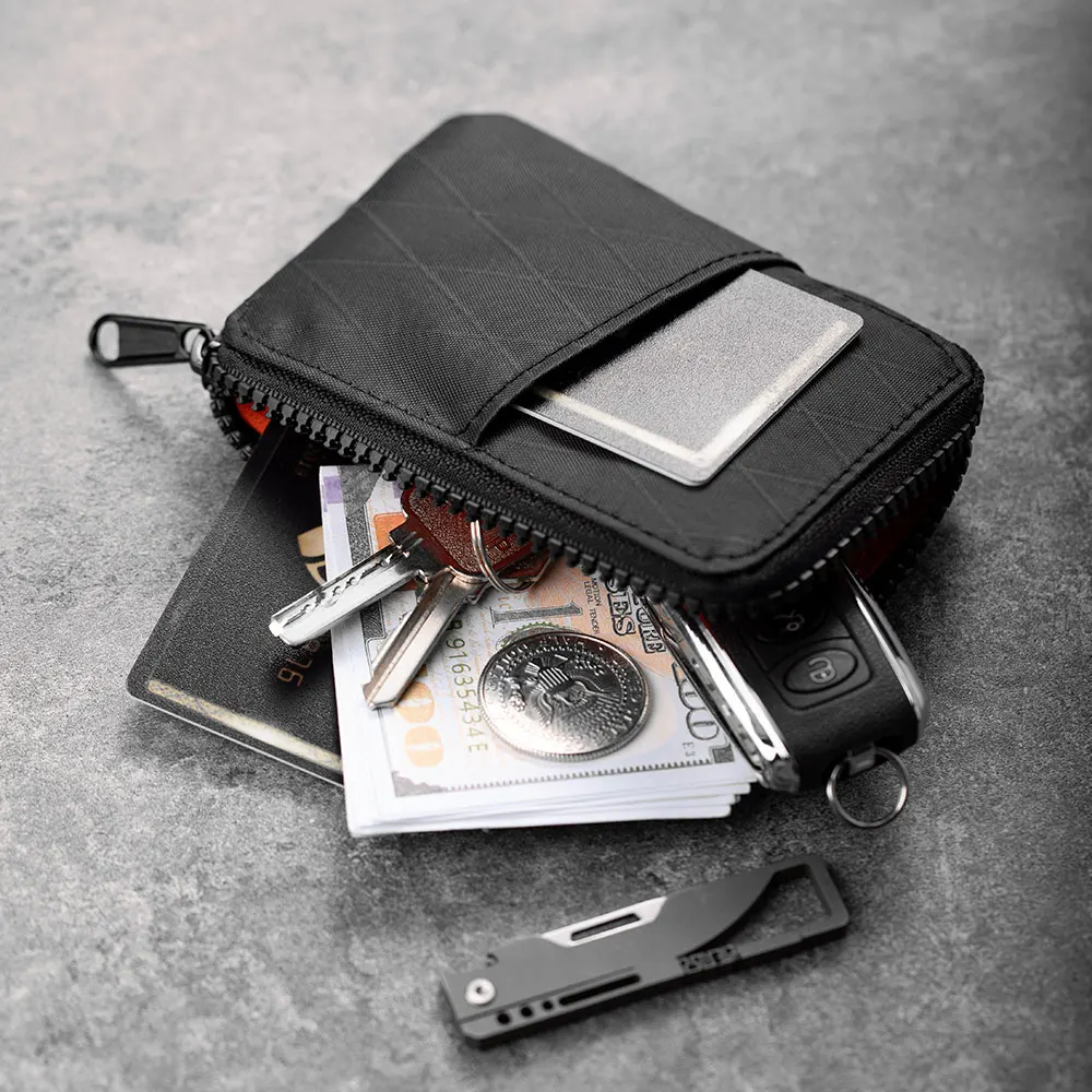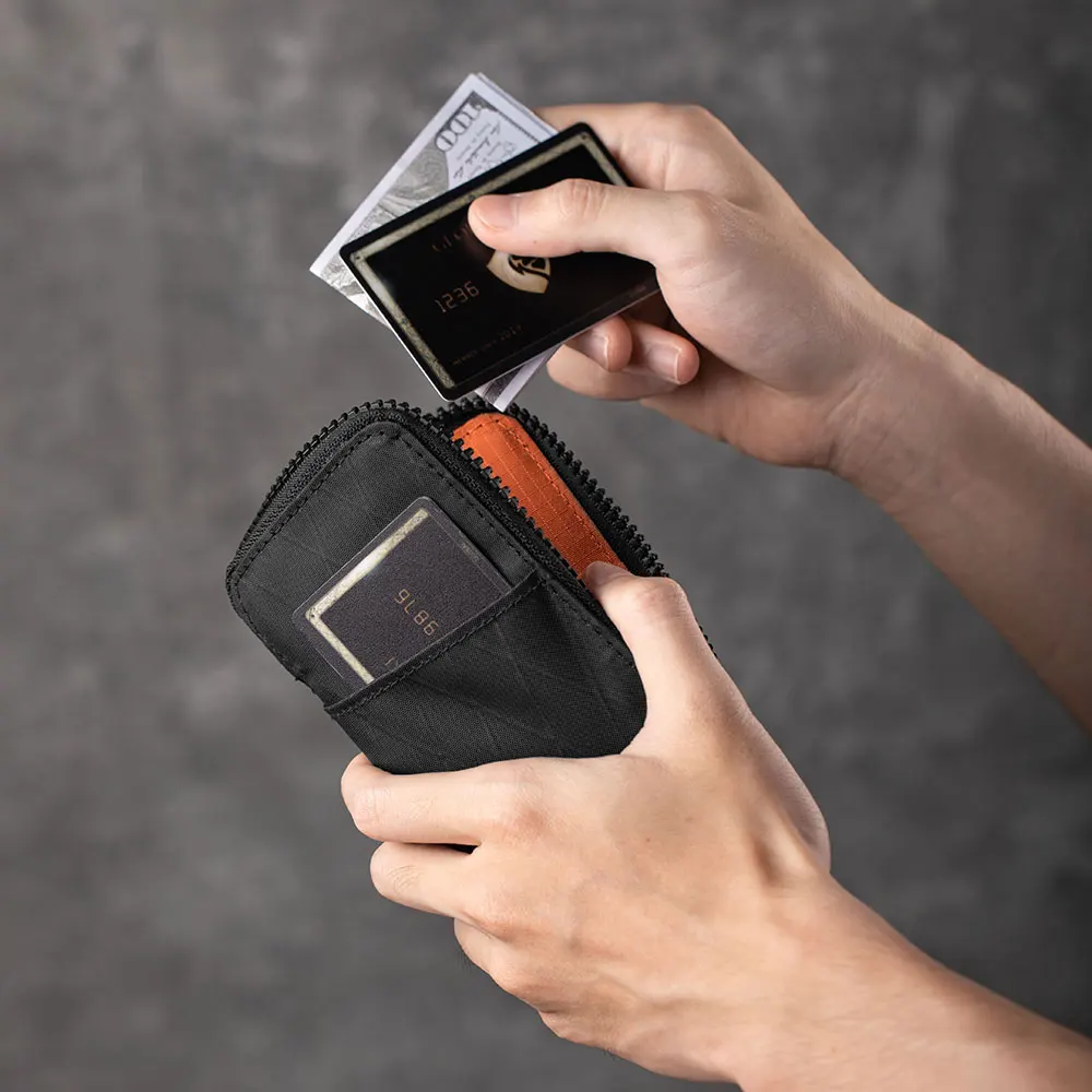 Zip Card Pouch - Use as Card Wallet and Coin Pouch - Holds 12-20 Cards and Cash - Made With Black Axoflux and RFID Blocking